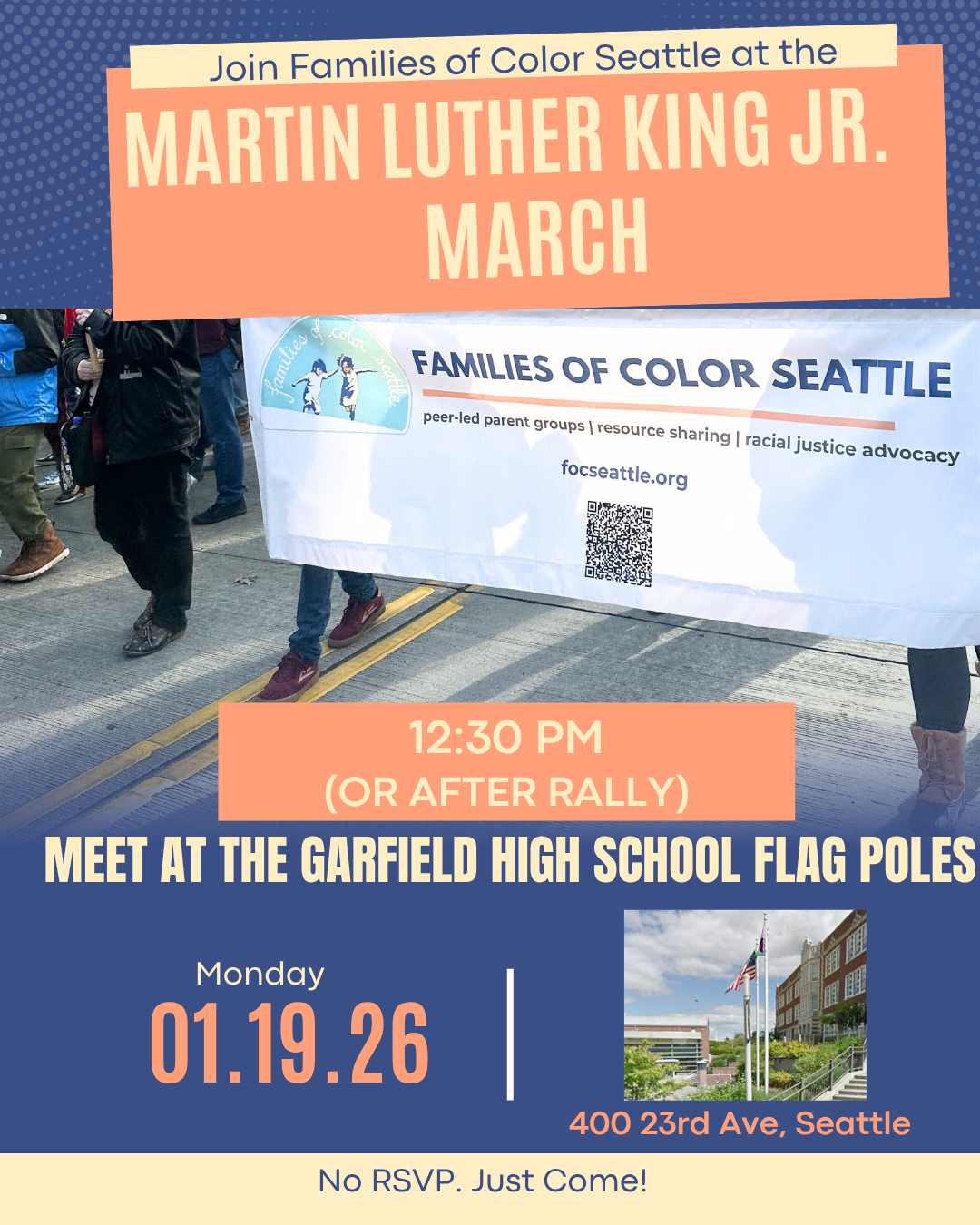 Engage in dialogue and cultural arts at our events for families of color. Join us and co-create affirming, joyful, and healing spaces for Black and Brown children and families.